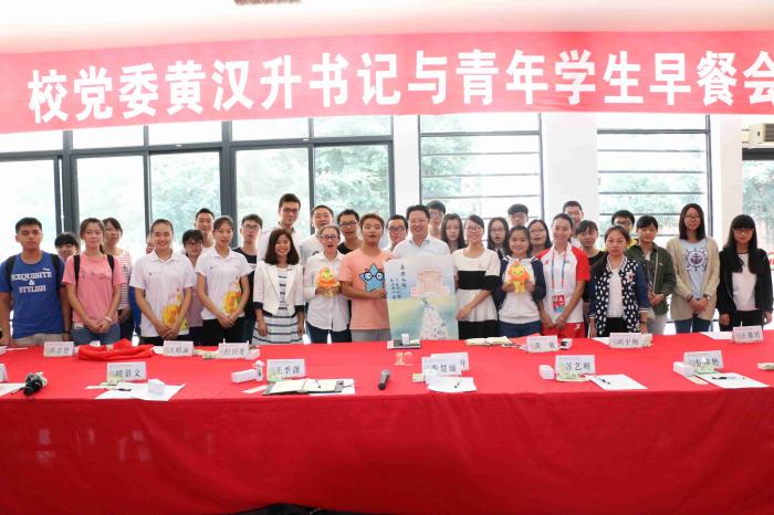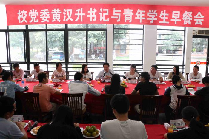 早餐会上,黄汉升简要介绍了学校的办学历史和发展现状,并与新生们亲切交谈。黄汉升深情地表示:师生所望,就是工作所向。他认为在担任校长、书记期间,最大的乐趣就是与同学们交流,倾听同学们对学校发展的意见与建议,解决同学们学习生活中的困难和问题。
