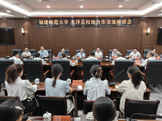 8月23日,校长郑家建、我校原党委书记李宝银、校党委副书记陈晓红一行赴光泽县交流座谈。光泽县委书记王贵,县委常委、宣传部部长、县政府副县长刘禄进,光泽县第一中学、光泽县实验小学负责人,我校光泽公费师范生代表参加座谈会。