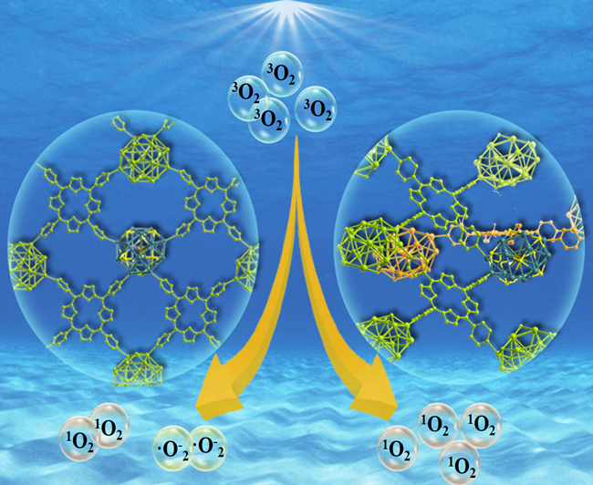 活性氧(ROS),包括单线态氧(1O2)、超氧阴离子(O2•-)和羟基自由基(•OH),在光催化氧化反应中扮演着关键角色。不同种类的ROS不仅具备独特的氧化能力,还可通过不同反应路径显著影响光催化反应的效率与选择性。因此,实现对ROS生成路径的选择性调控已成为该领域的重要研究方向。然而,光催化剂与周围氧气或水分子相互作用时往往同时生成多种ROS,易导致氧化产物选择性下降等问题。当前,调控ROS生成的主要策略集中于对框架材料构筑单元的调整,如替换中心金属、修饰连接体或引入活性客体等,以调控其电子结构与激子行为。尽管如此,如何在维持节点和连接体不变的前提下,通过直接引导单元间的连接方式以改变框架材料维度、孔隙结构、能带特性及氧气吸附能力,实现ROS精准调控,仍然是一个亟待突破的关键难题。