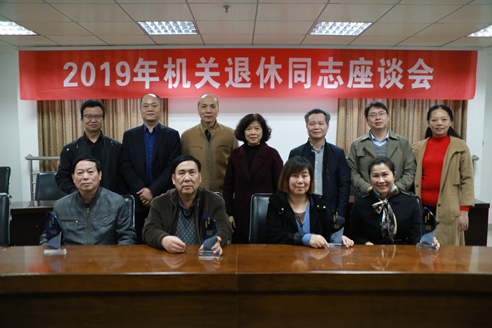 12月24日下午,机关党委在第四会议室召开2019年机关退休同志座谈会,机关党委书记黄张华、党委委员赵钦、工会副主席林龙都,以及部分2019年退休同志及其所在部门的领导参加了座谈会。