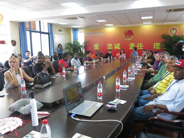 10月22日,来自南非、埃及、伊拉克、古巴、塞尔维亚等亚、欧、非、拉美四大洲14个国家的“2015年发展中国家青年代表团”到我校考察“五微五阵地”网络新媒体工作。校团委、青年学生代表近50人参加了交流。