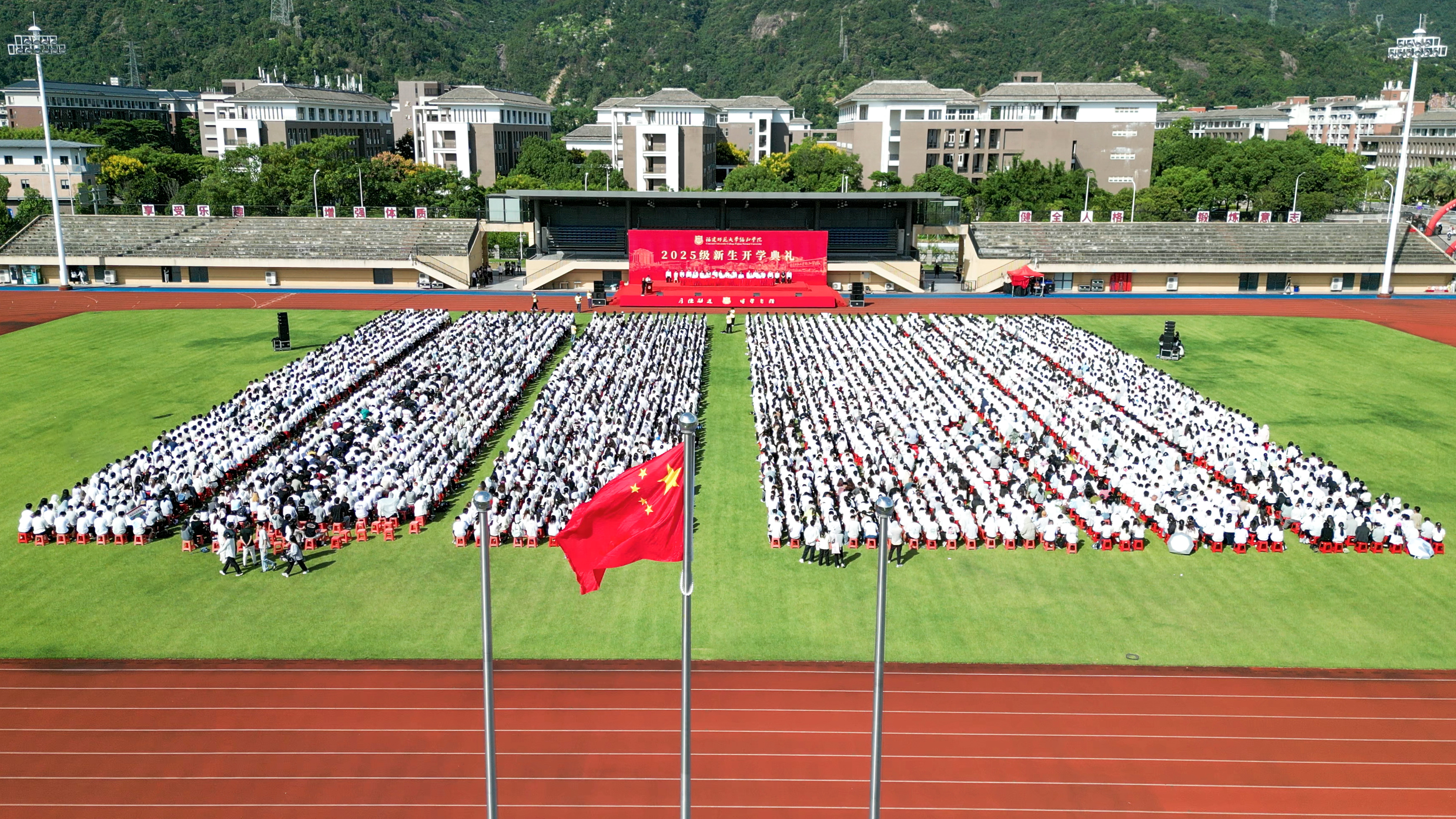 9月9日,我校协和学院2025级新生开学典礼在协和田径场隆重举行。我校党委书记潘玉腾、校长郑家建,学校有关部处主要负责人,协和学院院党政班子、各系部主要负责人,新生辅导员以及2025级全体新生参加典礼。典礼由协和学院党委常务副书记陈林男主持。