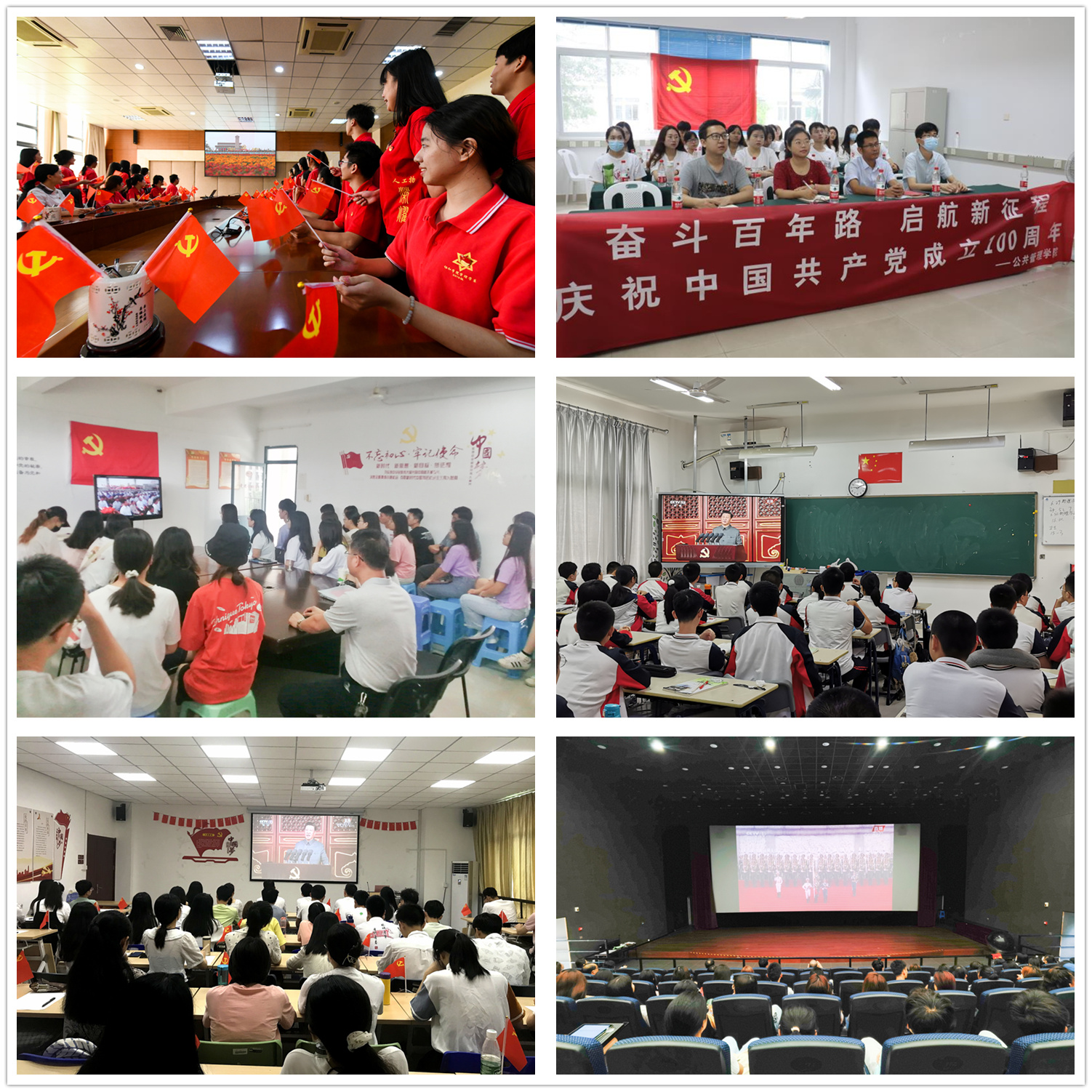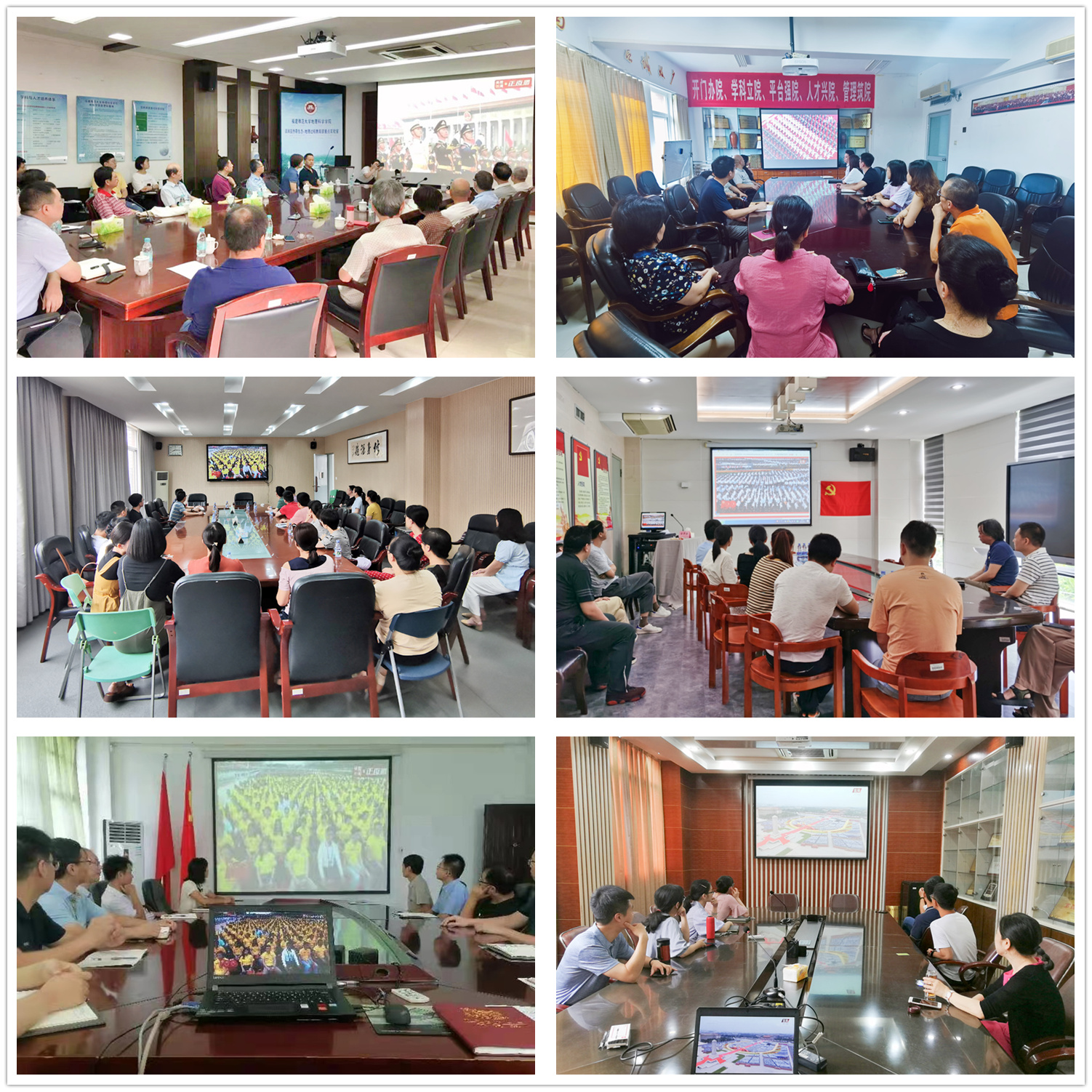 全体校领导、机关职能部门和各二级单位党委主要负责人在旗山校区宏达厅主会场收看庆祝大会直播,各二级单位党委、各单位设立50余个分会场,组织党员干部和师生通过电视、广播、网络、新媒体等渠道,在会议室、办公室、党团活动室、教室、宿舍等收听收看。