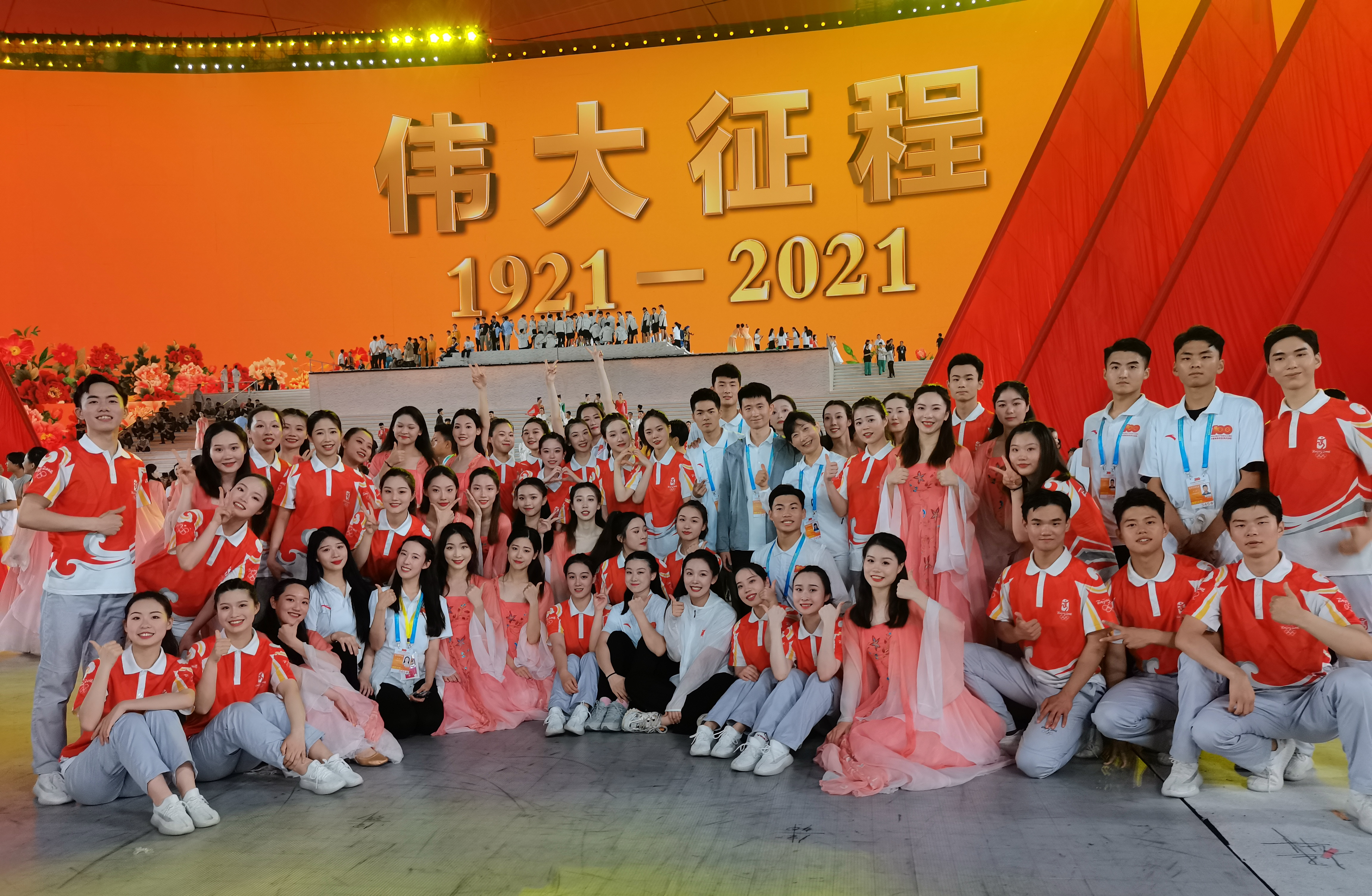 据悉,3月初以来,参演师生以强烈的使命感、责任感和过硬的专业素养积极投入排演工作,克服了水土不服、气候差异大、排练时间长、生活环境单一等困难。130分钟的演出中,我校学生精彩演绎第一篇章“浴火前行”歌舞《土地》、情景大合唱《怒吼吧!黄河》,第三篇章“激流勇进”合唱与舞蹈《行进的火炬》,第四篇章“锦绣前程”器乐、童声合唱与舞蹈《命运与共》以及主题曲《领航》等共5个节目,为中国共产党百年华诞献上师大人最热烈、最深情的祝福。