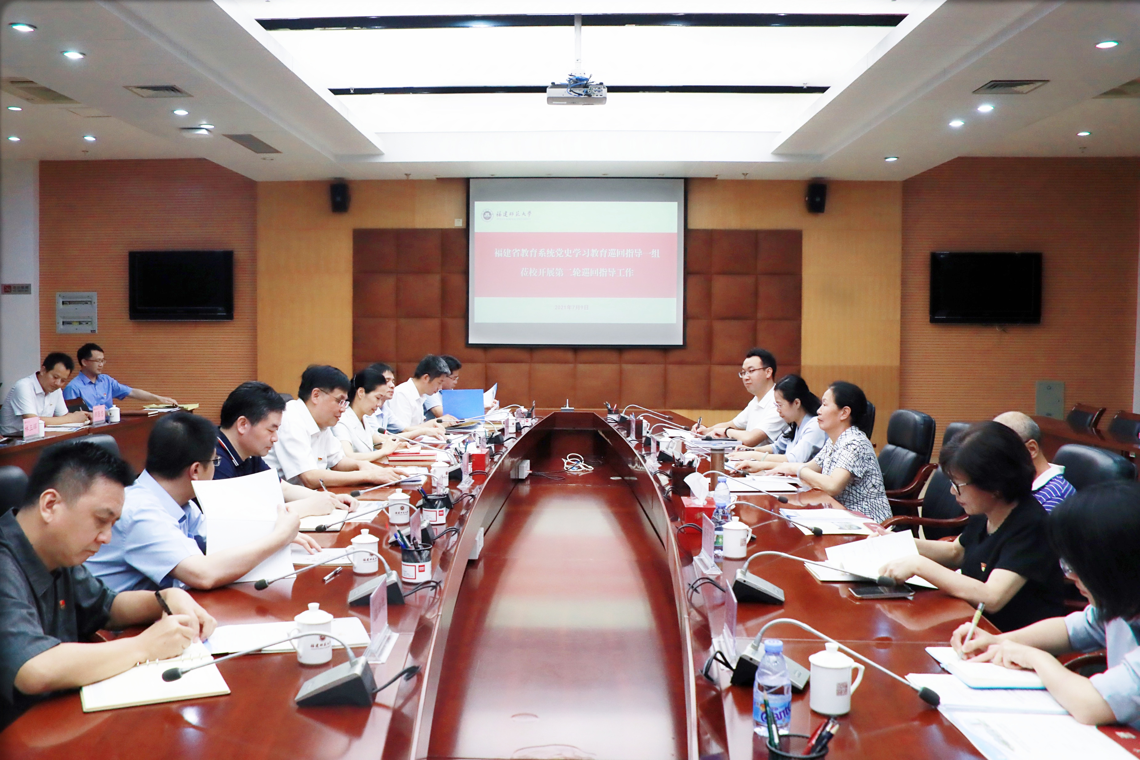 李宝银汇报了学校党史学习教育开展情况。他表示,自党史学习教育开展以来,我校认真贯彻落实中央、省委、省委教育工委关于党史学习教育的各项决策部署,始终坚持目标导向、效果导向、需求导向相结合,推动党史学习教育持续升温。一是提高政治站位,组织领导再强化。健全常态化工作推进机制,领导干部带头参加专题组织生活会、上党课等“三个一”活动,以高度的政治自觉、思想自觉、行动自觉抓好学习教育的任务落实。二是提高学习实效,理论武装再深化。多措并举掀起学习宣传贯彻习近平总书记“七一”重要讲话精神热潮,高质量办好党史学习教育专题读书班,发挥课程思政作用,切实把学习教育成效转化为推动“双一流”建设的强大动力。三是提高声势气势,形式载体再优化。组织师生赴京参加庆祝中国共产党成立100周年大型情景史诗《伟大征程》文艺演出,举办“美术作品中的党史”主题展,隆重召开“七一”表彰大会,举行“光荣在党50年”纪念章颁发仪式,举办“永远跟党走”教职工文艺展演、专场音乐会、朗诵会等活动,举办“中国共产党百年征程与辉煌成就”等系列理论研讨会,创作《党代会的故事》等系列主题融媒体产品,不断增强学习教育的针对性、实效性。四是提高工作效能,服务师生再实化。聚焦“急难愁盼”,分清“轻重缓急”,确定“我为师生办实事”第一批校级项目11项,及时响应、妥善解决师生合理诉求。下一阶段,学校将重点做好把学习贯彻“七一”重要讲话精神贯穿党史学习教育各方面,聚焦入脑入心,强化理论阐释,加强宣传引导,办好民生实事,不断提高学习教育的“成果转化率”。