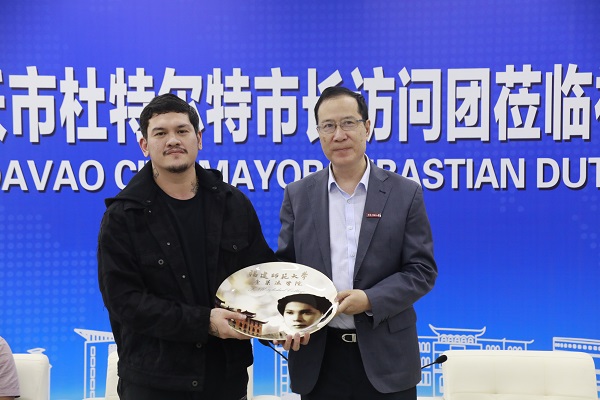 王长平代表学校欢迎塞巴斯蒂安·杜特尔特市长一行的来访,他表示,中菲两国隔海相望、一衣带水,有着上千年交往史,以诚相待、守望相助是两国人民共有的宝贵精神财富,希望借此次来访契机增进友谊互信、深化交流合作,欢迎菲律宾各界友好人士、更多青年学子来校交流和学习,做中菲故事的讲述者、中菲友谊的推动者,共谱友好合作新篇章。