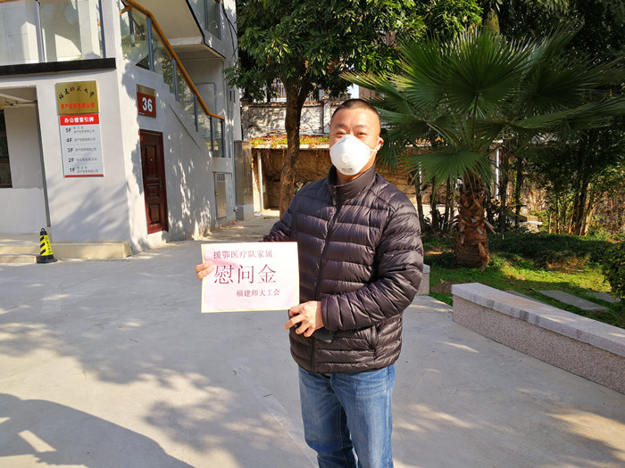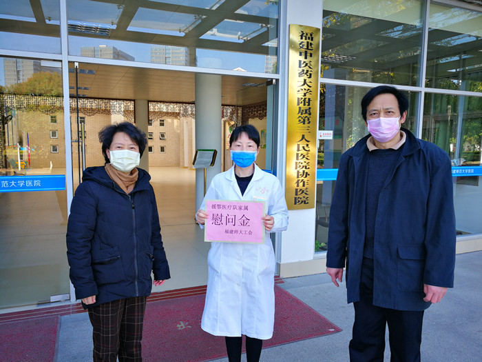 我校共有3名教工家属参加福建援鄂医疗队,分别在武汉和宜昌的定点医院参加抗击疫情的医疗救治工作。校工会负责人向家属详细了解了医护人员在湖北抗疫一线的工作、生活情况和家庭生活中存在的困难,代表学校向家属送上慰问金,并嘱咐家属要保重好身体,做好自己和家人的防护工作,确保家人“零感染”,让援鄂医护人员能够安心、放心、顺心地投入疫情防控阻击战。