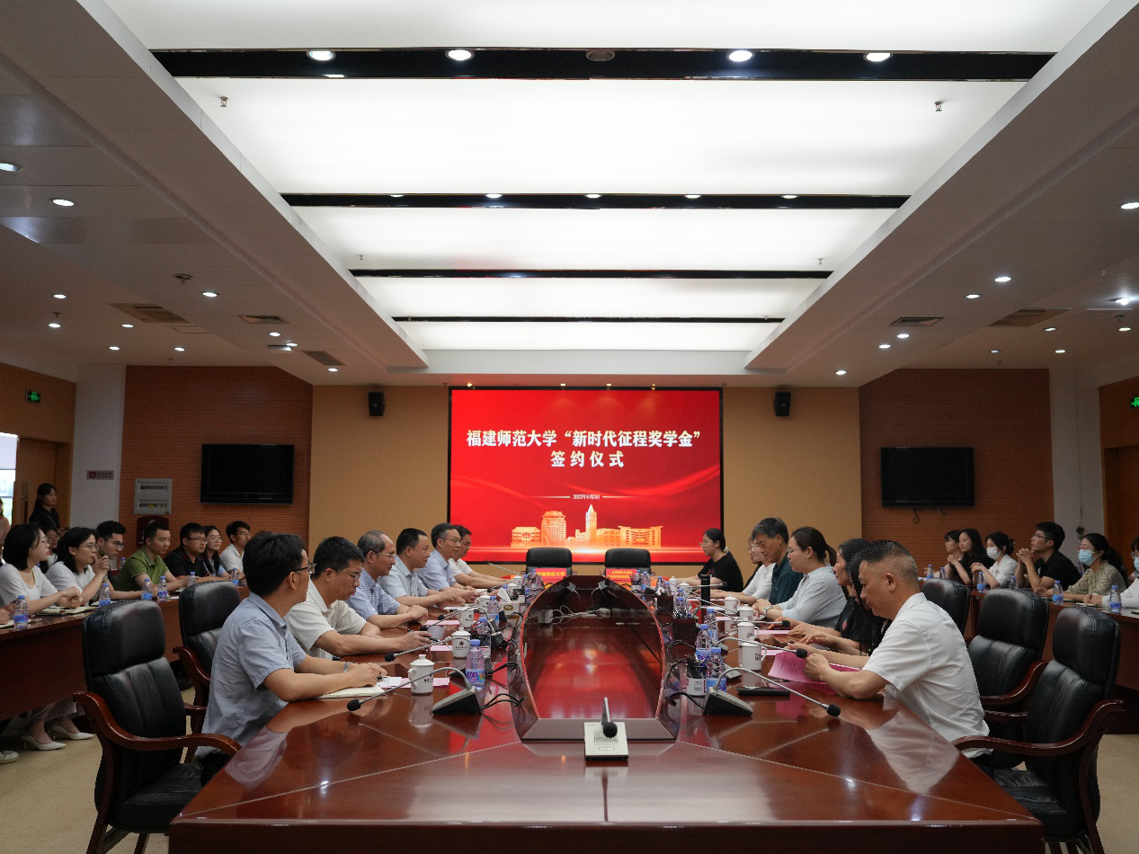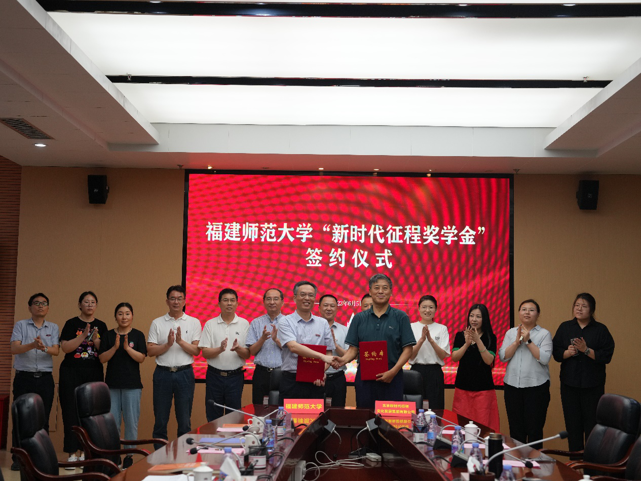 签约仪式于6月5日在旗山校区第十会议室举行。北京新时代征程文化发展集团有限公司董事长东方毅、秘书长申月及集团相关负责同志,我校党委副书记涂荣,文学院袁勇麟教授,学生工作部、教育基金会、财务处负责人,2020级辅导员代表及学生代表参加签约仪式。