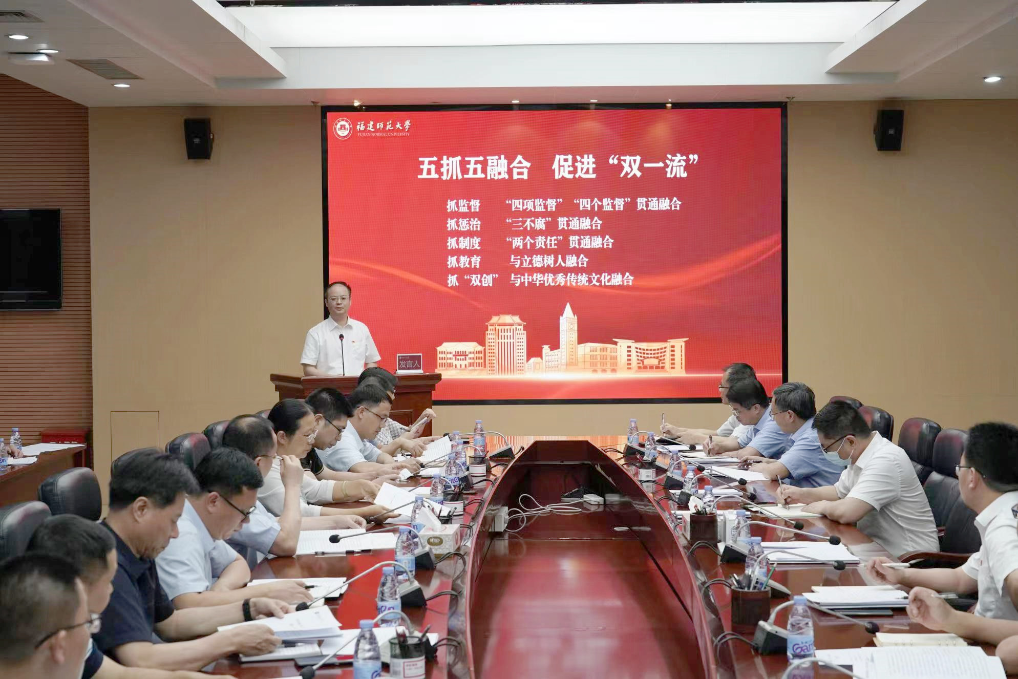 会议指出,为深入贯彻中央纪委、省纪委监委关于用“全周期管理”方式一体推进“三不腐”工作要求,2022年校纪委印发了《关于一体推进“三不腐”“全周期管理”项目化实施意见》,各二级党组织、纪委认真抓好贯彻落实工作。经过工作实践,结合近期调研,学校有效探索出“五抓五融合,一院一特色”务实举措,不断推动一体推进“三不腐”向基层延伸,提高“三不腐”综合功效,持续巩固发展良好校园政治生态,保障促进学校“双一流”建设。一是坚持抓监督,实现“四项监督”“四个监督”贯通融合,为一体推进“三不腐”提供有力有效的监督保障支撑;二是坚持抓惩治,确保“三不腐”贯通融合,实现“1+1+1>3”的综合功效;三是坚持抓制度,推动“两个责任”贯通融合,形成一体推进“三不腐”的强大合力;四是坚持抓教育,有效与立德树人融合,从理想信念上固本培元,从行动实践上正本清源,持续涵养“不想腐”的思想自觉;五是坚持抓“双创”,强化与中华优秀传统文化融合,推动传统文化创造性转化和创新性发展,努力为构筑“不想腐”思想堤坝做出师大探索和贡献。