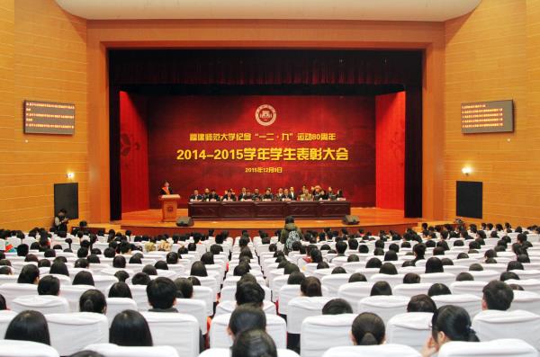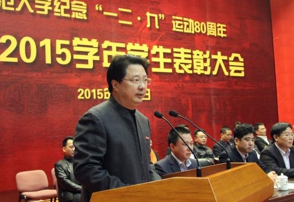校党委黄汉升书记作了热情洋溢的讲话。他指出,“一二·九”运动所展现的伟大的爱国主义精神,已经成为中国青年乃至我们民族英勇奋斗的不竭的精神源泉。他回顾和总结了过去一年来我校各项事业发展成就以及广大同学在专业学习、文化建设、科技创新、志愿服务等方面取得的丰硕成果,勉励同学们继承和发扬“一二·九”运动的爱国主义精神,积极向受到表彰的先进集体和个人学习,自觉按照习近平总书记等中央领导同志对当代青年提出的殷切期望和要求,做到志存高远,奋发有为,以过人的学问和技能,在实现中国梦的伟大进程中实现自己最大的人生价值;做到修身洁行,德才并重,成为一个有追求、有才华、有道德、讲诚信,真正德才兼备的人才;做到知情明理,情理兼修,主动学习与人交往和解决实际问题的能力,更好地融入社会,养成健全人格;做到积极进取,勇于开拓,用创新创造、服务社会的实际行动,充分彰显师大学子的青春风采。