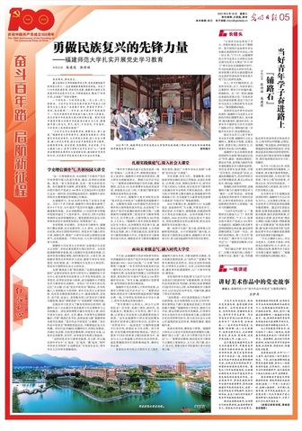 8月18日,《光明日报》第五版整版聚焦我校党史学习教育,深度报道了我校党史学习教育的创新做法和积极成效。专版由三个部分组成:第一部分主体通讯文章,题为“勇做民族复兴的先锋力量——星空下载游戏推荐安卓扎实开展党史学习教育”;第二部分“长镜头”专栏,题为“当好青年学子奋斗路上的‘铺路石’”;第三部分“一线讲述”专栏,题为“讲好美术作品中的党史故事”。
