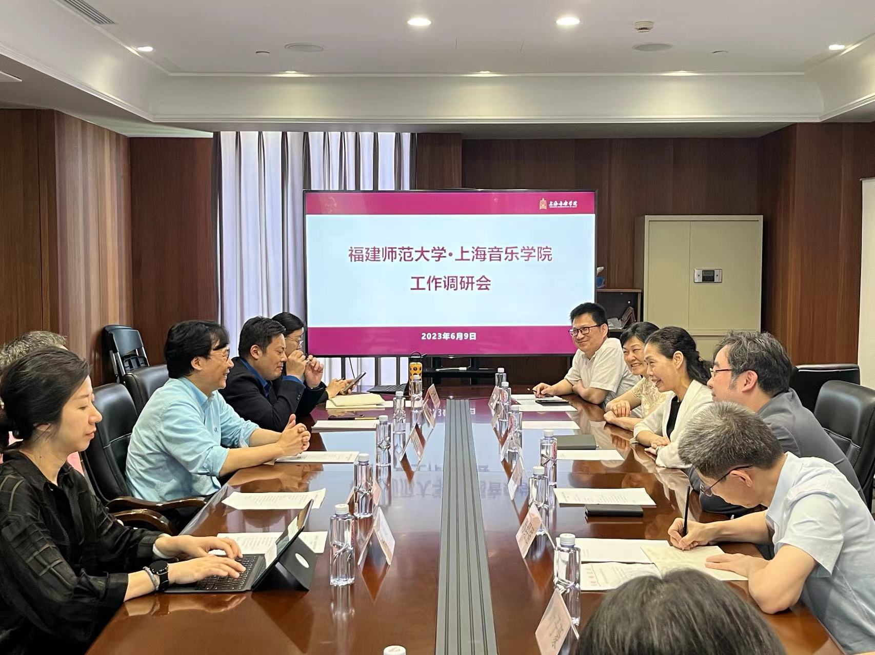 6月9日,校党委副书记陈晓红,宣传部(文明办)、音乐学院相关负责人,音乐学院博士生导师、福建歌舞剧院院长孙砾等一行10人,赴上海音乐学院开展学习调研活动。上海音乐学院院长廖昌永,宣传部、发展规划处、研究生部、音乐学系等单位主要负责人参加座谈。