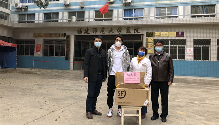 3月10日,体育科学学院2001级校友、福州金山中学教师魏各顺和陈晓华在辅导员黄智锋的陪同下,向学校捐赠多箱防控物资。