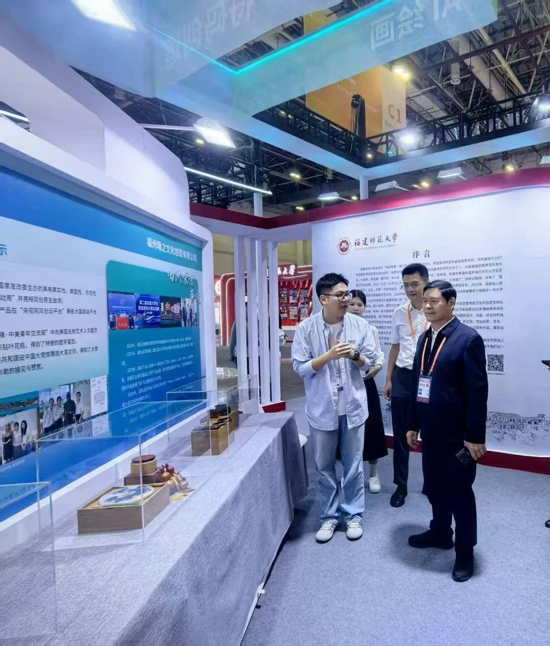 我校独立展区以“艺术与科技赋能生活”为主题,突出“创新、生长、共融”,探索艺术表达的新路径、新形式和新内容,展出了环境艺术设计、视觉传达艺术设计、服装与服饰设计、动画、综合材料绘画等5个专业22件优秀设计作品。展区内还开展漂漆漆扇制作活动、展出“师出邮名”系列创意文创产品、播放原创优秀动画视频,吸引大量参观者驻足欣赏、互动体验。