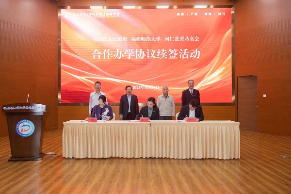 11月6日,福清市人民政府、我校和河仁慈善基金会三方合作办学协议续签仪式在我校附属福清德旺中学举行。省人大常委会原副主任、省政府原副省长曹德淦,福耀集团创始人、终身荣誉董事长曹德旺,我校校长郑家建、党委副书记陈晓红,福清市委副书记、市长樊学双,河仁慈善基金会理事长武双,福清市委、市政府领导及我校党政办公室、教师教育学院、附属中学等单位有关负责人参加活动。