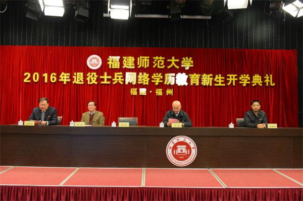 开学典礼于3月12日上午在仓山校区田家炳楼一楼演播厅举行。许明副校长,闽清安置办黄宇杰主任,教师代表、文学院博士生导师郭丹教授,网络与继续教育学院负责人等出席。福州地区的退伍军人学员们也来到了现场参加典礼。厦门、莆田、宁德、泉州等全省其他地区的退伍军人学员们也通过视频会议系统同步参加开学典礼。