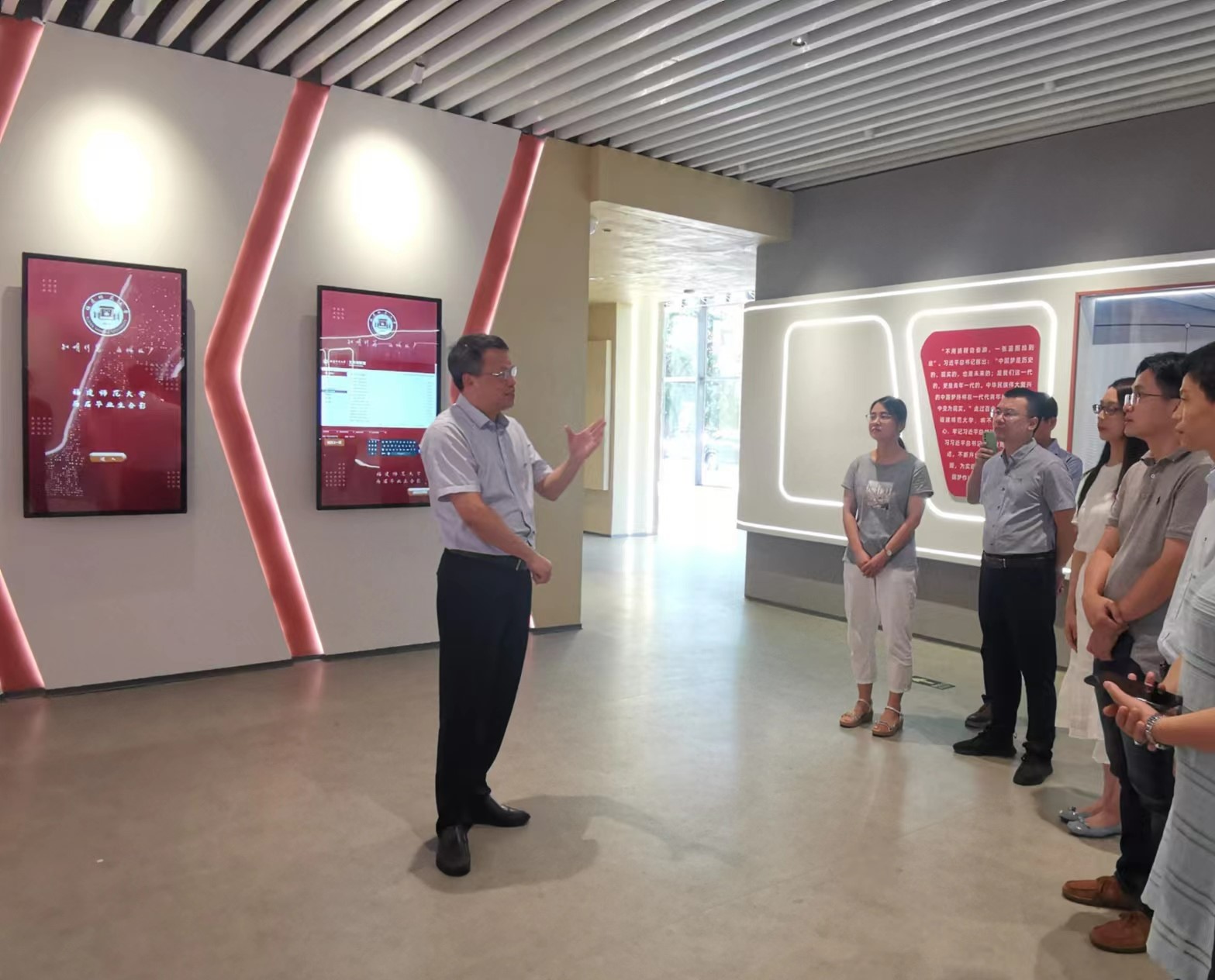 潘玉腾与青年人才代表共同研学新时代大学生社会大课堂实践中心展区内容,在沉浸式学习中深刻感悟习近平总书记关于高校思想政治工作、思想政治理论课建设和实践育人的系列重要论述,深入了解学校在新时代大学生思想政治教育方面的实践探索和丰硕成果。