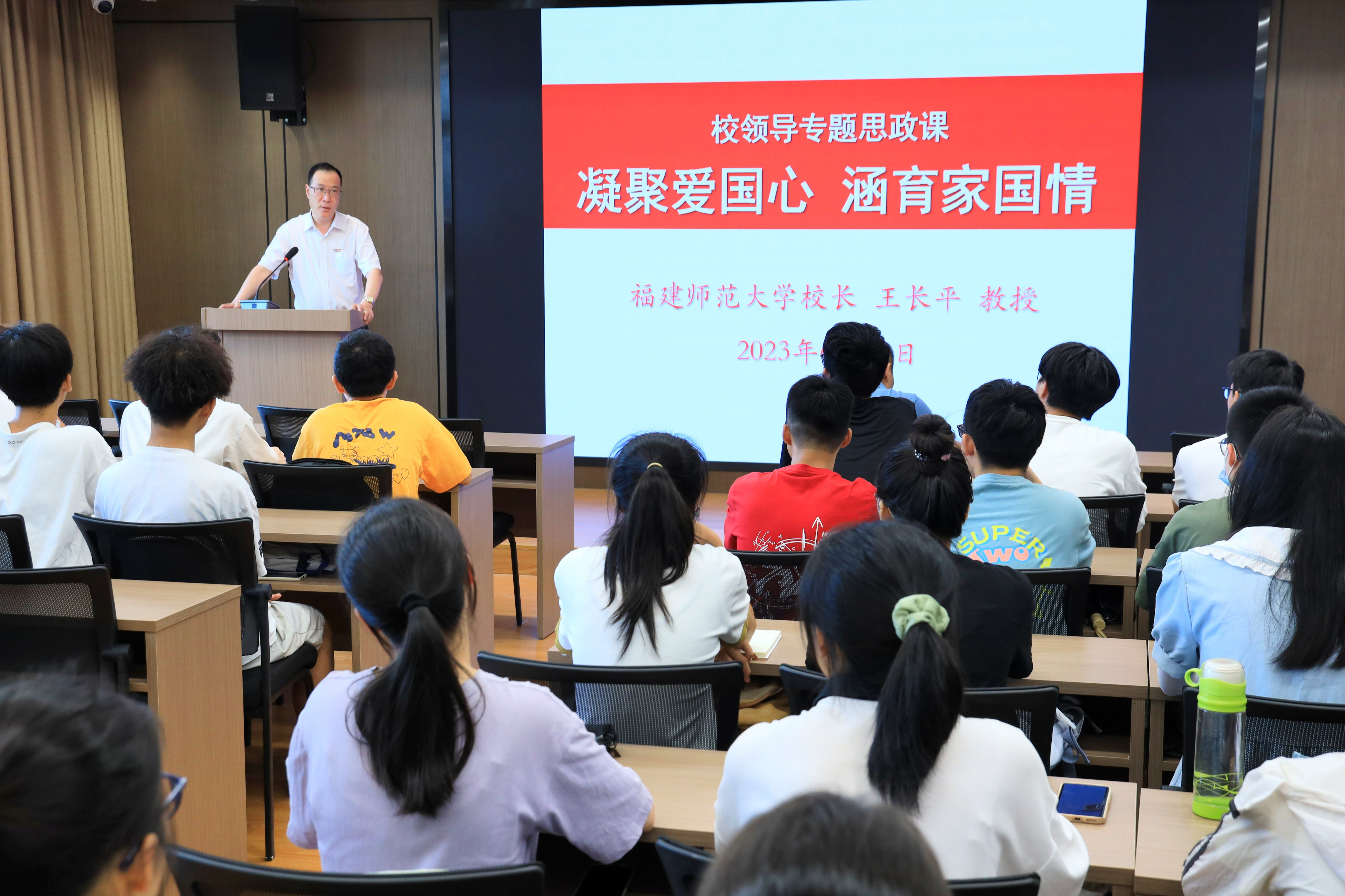 6月26日,校长王长平教授为数学与统计学院2022级本科生讲授题为《凝聚爱国心,涵育家国情》的思政课。