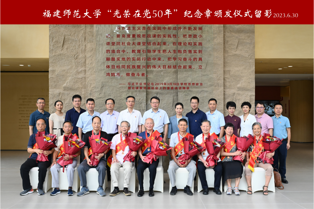 6月30日,我校在旗山校区隆重举行“光荣在党50年”纪念章颁发仪式。校党委书记潘玉腾、党委副书记陈晓红,“光荣在党50年”纪念章获得者,有关职能部门和二级党组织负责人,师生党员代表参加仪式。仪式由陈晓红主持。