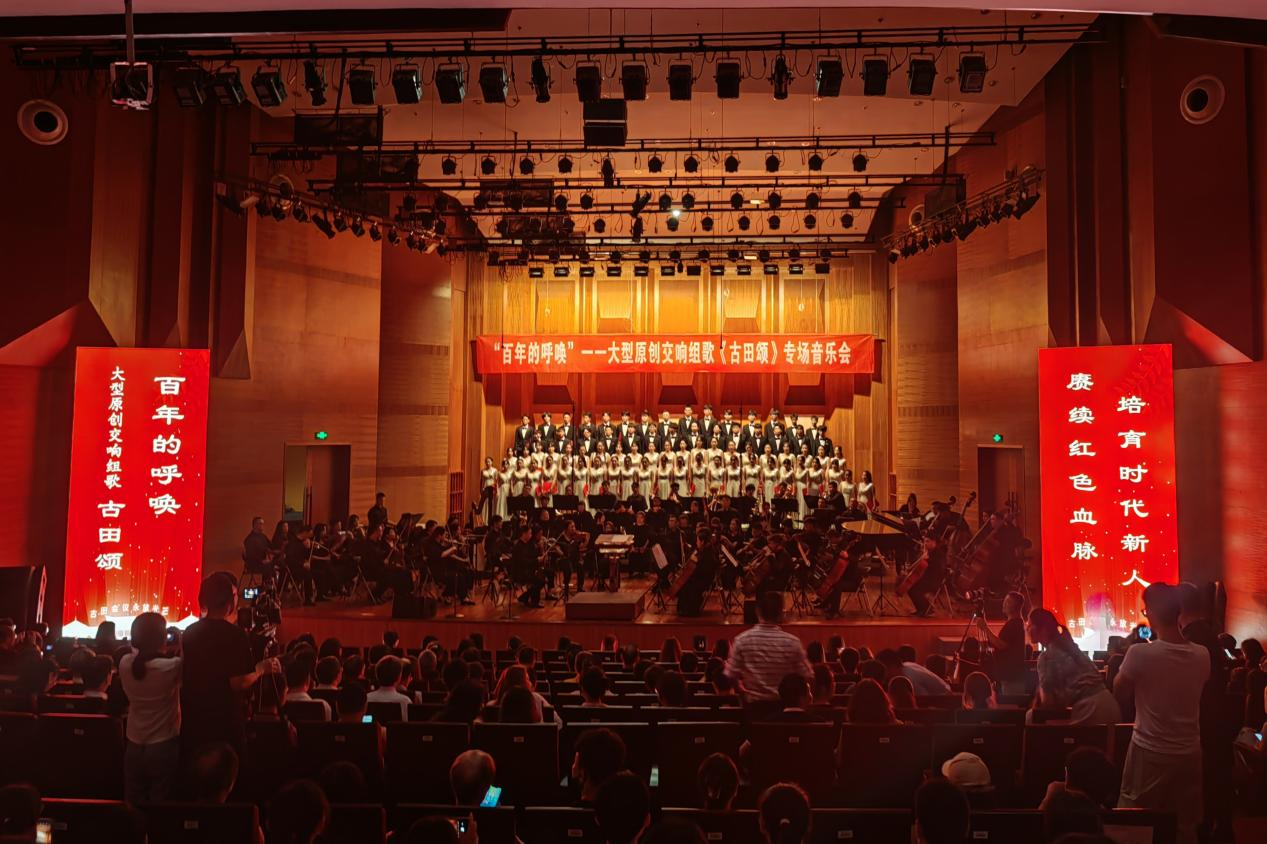 《古田颂》以红色精神为线,用文字和音乐共同串起散落在古田革命老区真实感人的故事和印记,深情讴歌古田会议精神和革命老区人民英勇奋斗历史,抒发“守初心、担使命,走好新时代长征路”的浓厚情怀,重现党领导人民为建立新中国浴血奋战的峥嵘岁月,感悟古田会议的重大历史意义和光荣传统,深切体会“星星之火,可以燎原”的革命真理。2020年7月在福建大剧院首演,2021年4月在国家大剧院音乐厅演出,2023年5月赴香港驻港部队进行慰问演出,获得海内外社会各界广泛赞誉。
