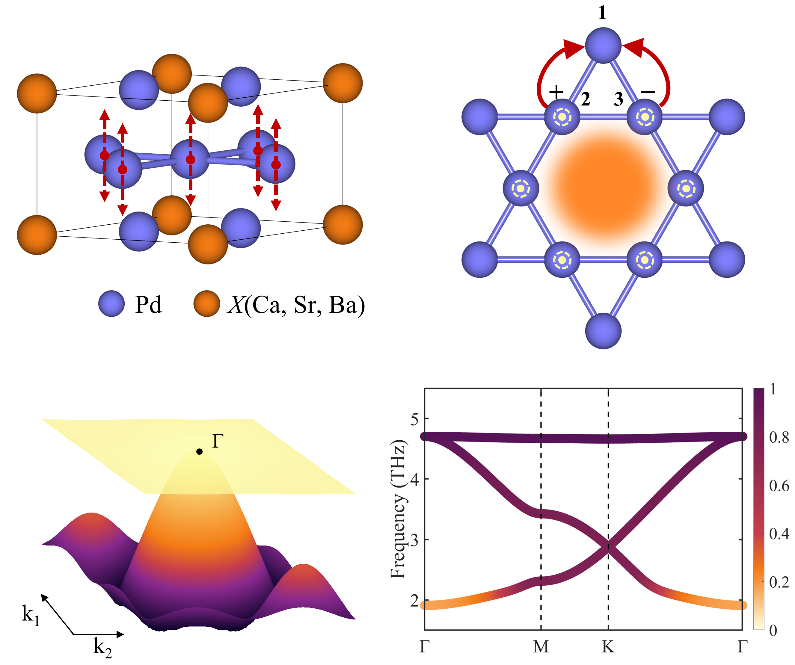 声子平带及其振动模式示意图