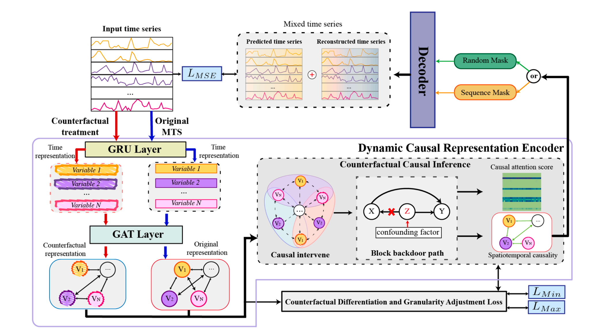 研究成果二:针对已有无监督多元时间序列异常检测方法难以有效地模拟复杂的时空依赖关系,存在着动态混杂因素干扰异常检测的挑战,提出了基于因果推断的细粒度依赖建模方法 SCID。该方法通过构建动态因果表示编码器,利用反事实干预剥离冗余影响因素,准确识别变量间的即时与延迟因果依赖;并引入预测-重构双掩码机制,将时序演化特征与局部结构特征联合建模,从而实现对复杂时空依赖的精细表征。同时,方法在优化目标中加入因果区分与粒度校正项,以缓解多变量粒度不一致带来的偏差,提高对复杂模式演化下异常信号的敏感度。实验结果显示,SCID 在五个真实数据集上取得领先表现,能够有效识别由隐含因果链条驱动的细粒度异常。该成果以“Fine-grained multivariate time series anomaly detection via causal inference”为题,星空下载游戏推荐安卓为第一完成单位,第一作者为我校2023级研究生陈祥炜同学(现为大连理工大学博士研究生),发表在国际知名期刊《Knowledge-Based Systems》上,该期刊属于中科院一区TOP期刊。