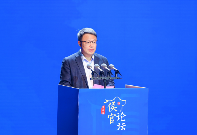 张定锋在致辞中表示希望以侯官论坛为桥梁,推动创新理念和科研成果在福州落地转化,用更开放视野和创新举措谱写教育科技人才一体化发展新篇章,让千年侯官文化焕发新的生机。