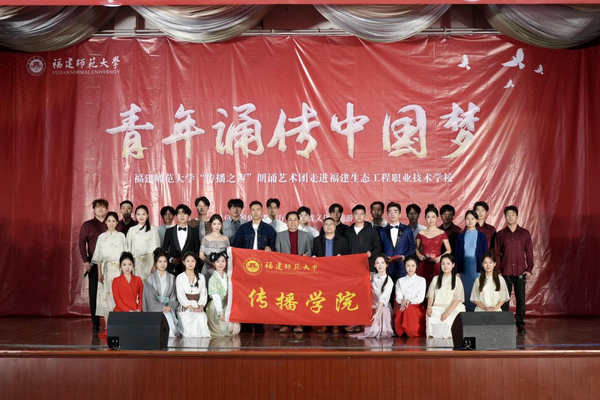 12月3日,由福建省教育厅、福建省文化和旅游厅主办,我校传播学院承办的“青年诵传中国梦——高雅艺术进校园”朗诵专场活动在福建生态工程职业技术学校大礼堂举行。福建生态工程职业技术学校党委书记徐锦心,党委副书记、校长叶忠华等党政领导班子成员,我校传播学院党委副书记林子鸿,院关工委主任刘舒平,播音与主持艺术系教师吴煌以及“传播之声”朗诵艺术团成员参加本次活动。