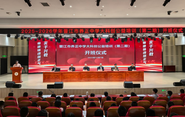 12月7日上午,由我校数学与统计学院和晋江市养正中学联合举办的大科创公益培训(第二期)在晋江开班。我校原校长王长平教授、数学与统计学院党委副书记王尚鹏、副院长柯品惠及学院相关负责人受邀出席。养正中学党委书记、校长王宽购,党委副书记林胜利,以及500余名师生共同参与活动。仪式由养正中学校长助理吴聪能主持。