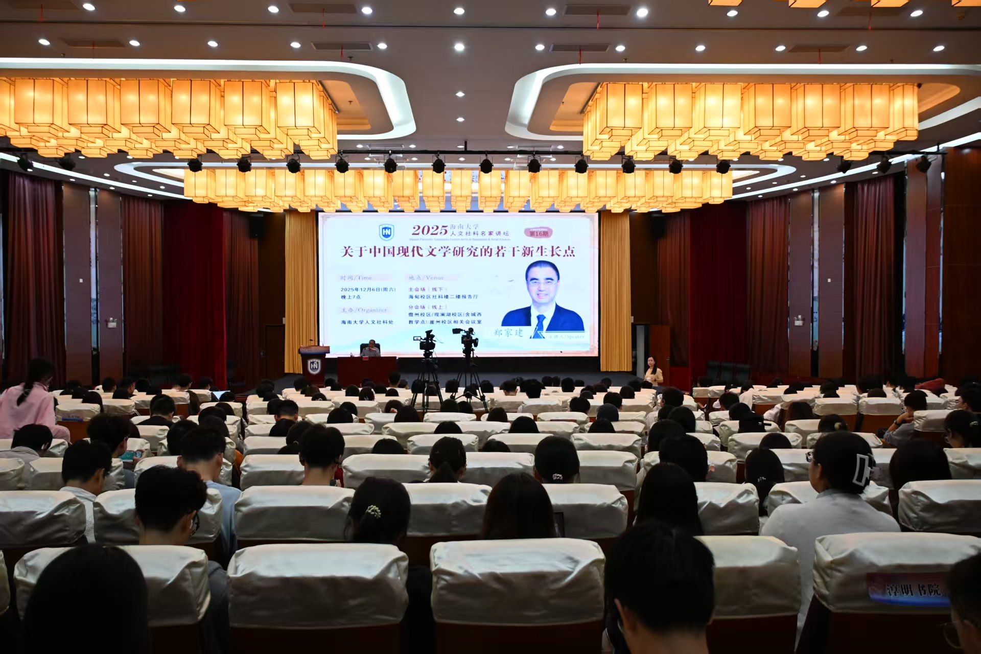 12月6日,校长郑家建应邀参加海南大学人文社科名家讲坛,作题为《关于中国现代文学研究的若干新生长点》的报告。海南大学党委常务副书记张继友出席讲坛。讲坛由海南大学党委常委、副校长李步洪主持。海南大学相关单位部门负责人,海甸校区、儋州校区、观澜湖校区(含城西教学点)、崖州校区师生代表以线上线下相结合的方式参加论坛。