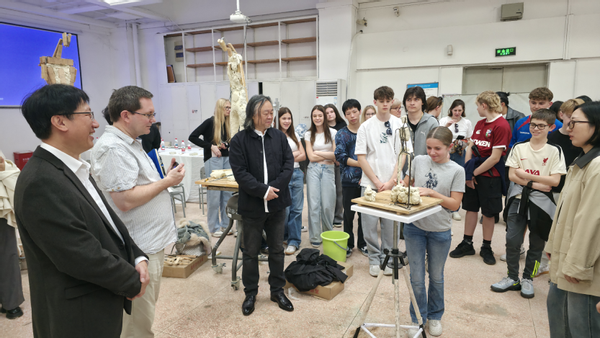 随后,研学团一行来到美术学院,罗礼平院长热情接待。在雕塑师言传身教之余,研学团成员纷纷动手,体验了中国熊猫泥塑。