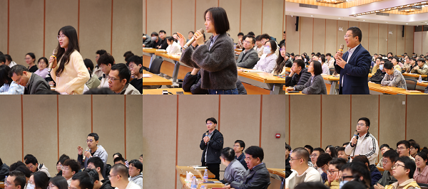 报告会上,黄永刚院士以深厚的学术积淀和前沿的科研视野,从远程触觉感知的应用场景切入,剖析了当前压力触觉驱动器存在的技术短板,聚焦多模态触觉执行器的理论前沿,阐述了该项研究的创新性力学模型和远程精准触觉联动机制,介绍了该项研究在虚拟现实交互和智能穿戴设备等领域的广阔应用前景。在互动环节,黄院士耐心细致解答了师生们的问题,并结合自身成长经历鼓励广大师生潜心钻研学术、深耕基础研究。