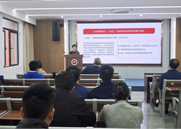 12月19日,化学与材料学院学习贯彻党的二十届四中全会精神宣讲报告会在科研楼303举行。校宣讲团成员、协和学院院长杨林香教授作专题辅导报告。报告会由院党委副书记(主持工作)张娴主持,全院教职工参加学习。