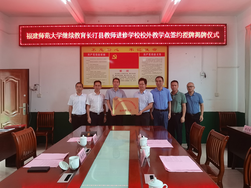 8月23日,我校在长汀举行继续教育长汀县教师进修学校校外教学点签约授牌仪式。我校副校长郑家建,发展规划处、网络与继续教育学院负责人,长汀县委常委、常务副县长陈其民,长汀县教育局、教师进修学校负责人参加仪式。