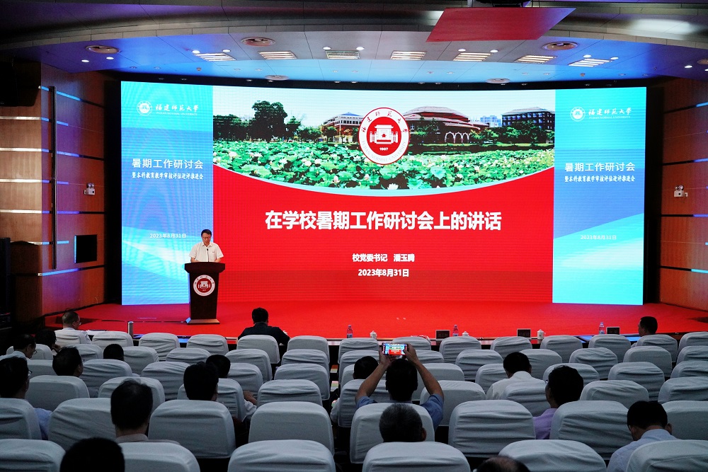 会议于8月31日在旗山校区学术大讲堂举行。校领导,机关部处、教辅机构主要负责人,学院党政主要负责人及分管教学、学生工作负责人等参加了会议。