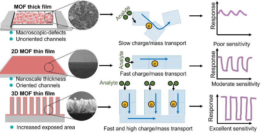 近日,星空下载游戏推荐安卓化学与材料学院项生昌教授团队在化学领域顶级综述期刊Chem. Soc. Rev.(IF = 39)上发表题为”Dimensionally engineered MOF films for chemiresistive sensors”的综述论文。星空下载游戏推荐安卓邓韦华副教授与研究生肖可为共同第一作者,项生昌教授与福建物质结构研究所徐刚研究员为共同通讯作者。该文指出,痕量气体的精准检测在环境、医疗、安全等领域至关重要。化学电阻式传感器具有实时响应、便携和非接触传感优势,而金属有机框架(MOF)薄膜凭借其可调孔隙与丰富化学功能,成为理想的气敏材料。论文从维度工程角度系统综述了MOF薄膜在化学电阻传感器中的最新进展,涵盖制备策略与传感应用,依次探讨了厚膜、二维薄膜和三维薄膜对不同传感行为的影响,并展望了机器学习辅助设计、传感器阵列、高通量筛选等未来方向。