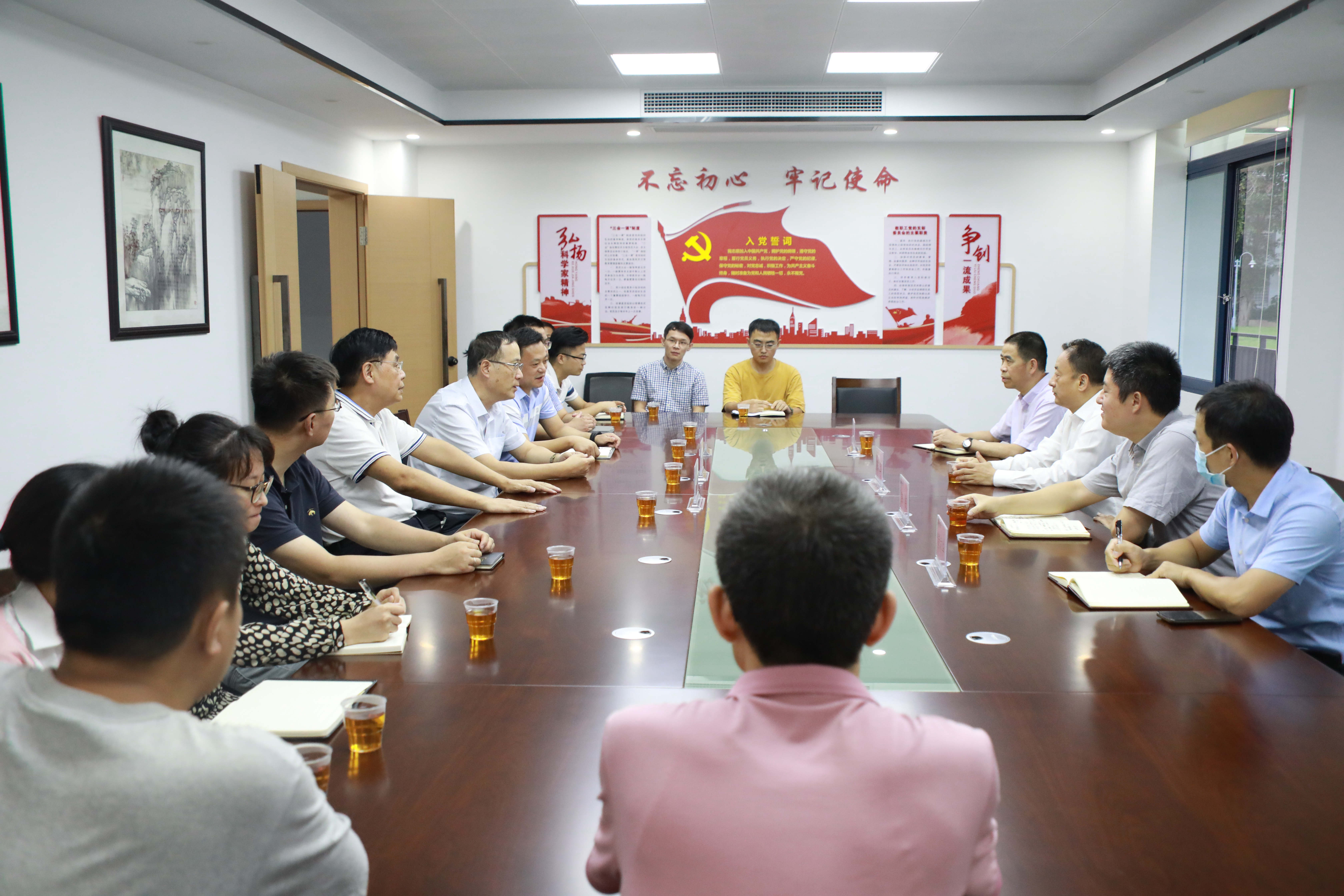 在海峡柔性电子研究院,陈秋立厅长一行走访看望了黄维院士领衔创建的柔性电子创新团队成员,并召开座谈会,详细听取了学校关于柔性电子省创新实验室建设进展和柔性电子创新团队建设进展情况汇报,希望学校按照省委、省政府的部署要求,强化统筹协调,坚持一体推进,加快柔性电子创新平台和创新团队建设,并表示省科技厅将不断完善科技和人才服务体系,支持柔性电子省创新实验室加快建设。