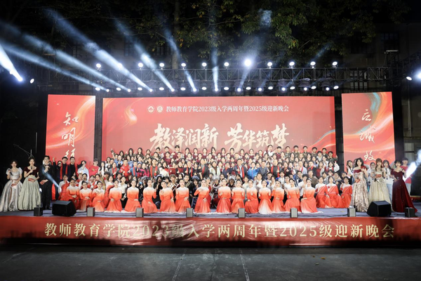 近日,教师教育学院在仓山校区物光篮球场举办“教泽润新·芳华筑梦”2023级入学两周年暨2025级迎新晚会。晚会分为“教泽润新·初蕊迎光”“芳华筑梦·弦歌飞扬”“师范风华·薪火相传”“同心致远·情满杏坛”四个篇章,涵盖乐队演奏、合唱、舞蹈、小品、朗诵、歌曲串烧等多样特色节目,学院师生与兄弟院校代表联袂登台、倾情演绎,现场氛围热烈。整场演出精彩纷呈,生动展现了教师教育学院学子笃行致远、不负韶华的青春风貌。(教师教育学院)