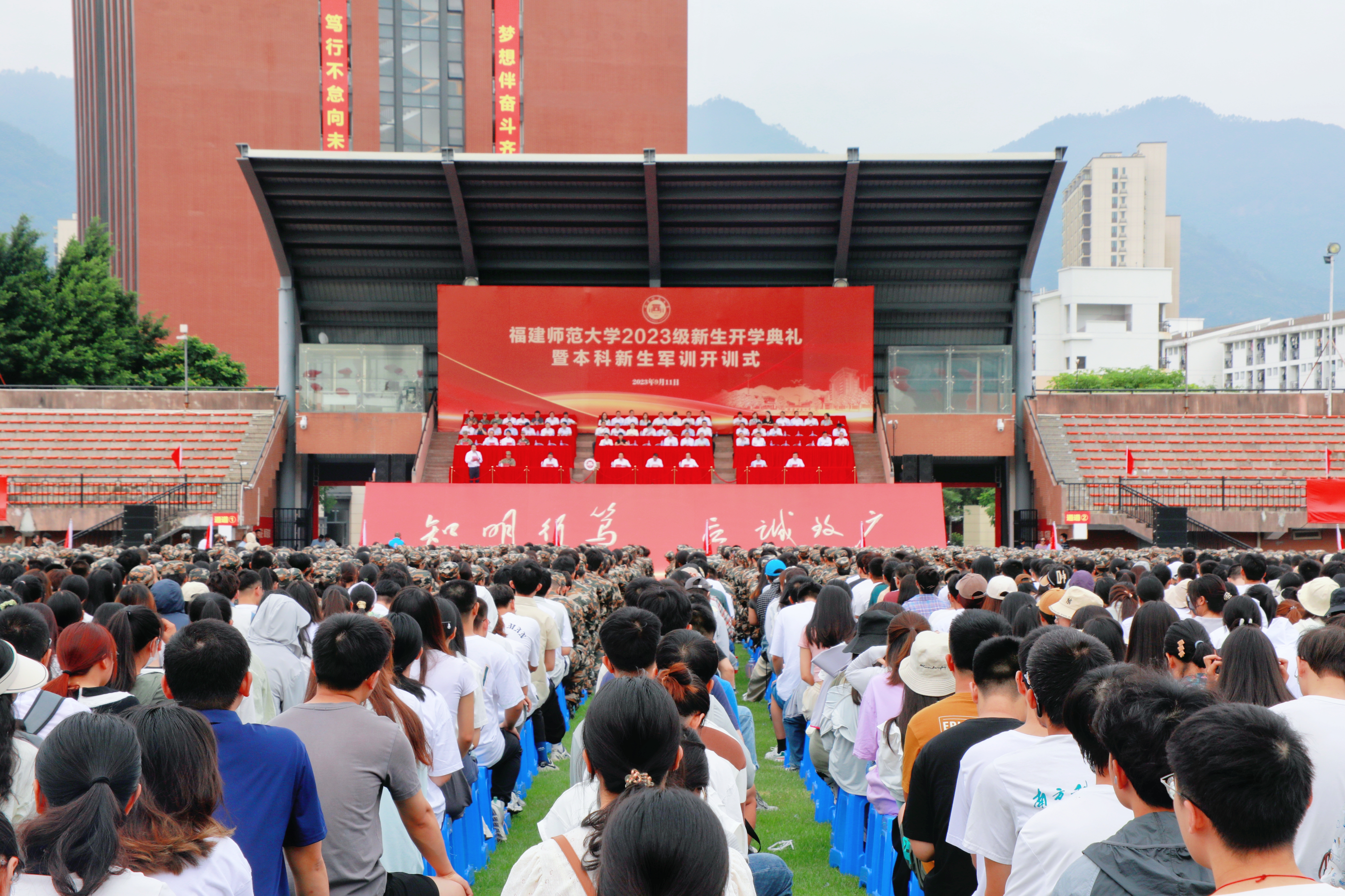 9月11日上午,我校在旗山校区东区田径场隆重举行2023级新生开学典礼暨本科新生军训开训式。校领导潘玉腾、王长平、涂荣、郑家建、陈庆华、吴剑锋,全体参训教官,机关部处主要负责人,学院党政主要负责人、分管学生工作负责人,新生辅导员和2023级新生参加典礼。典礼由校党委副书记涂荣主持。