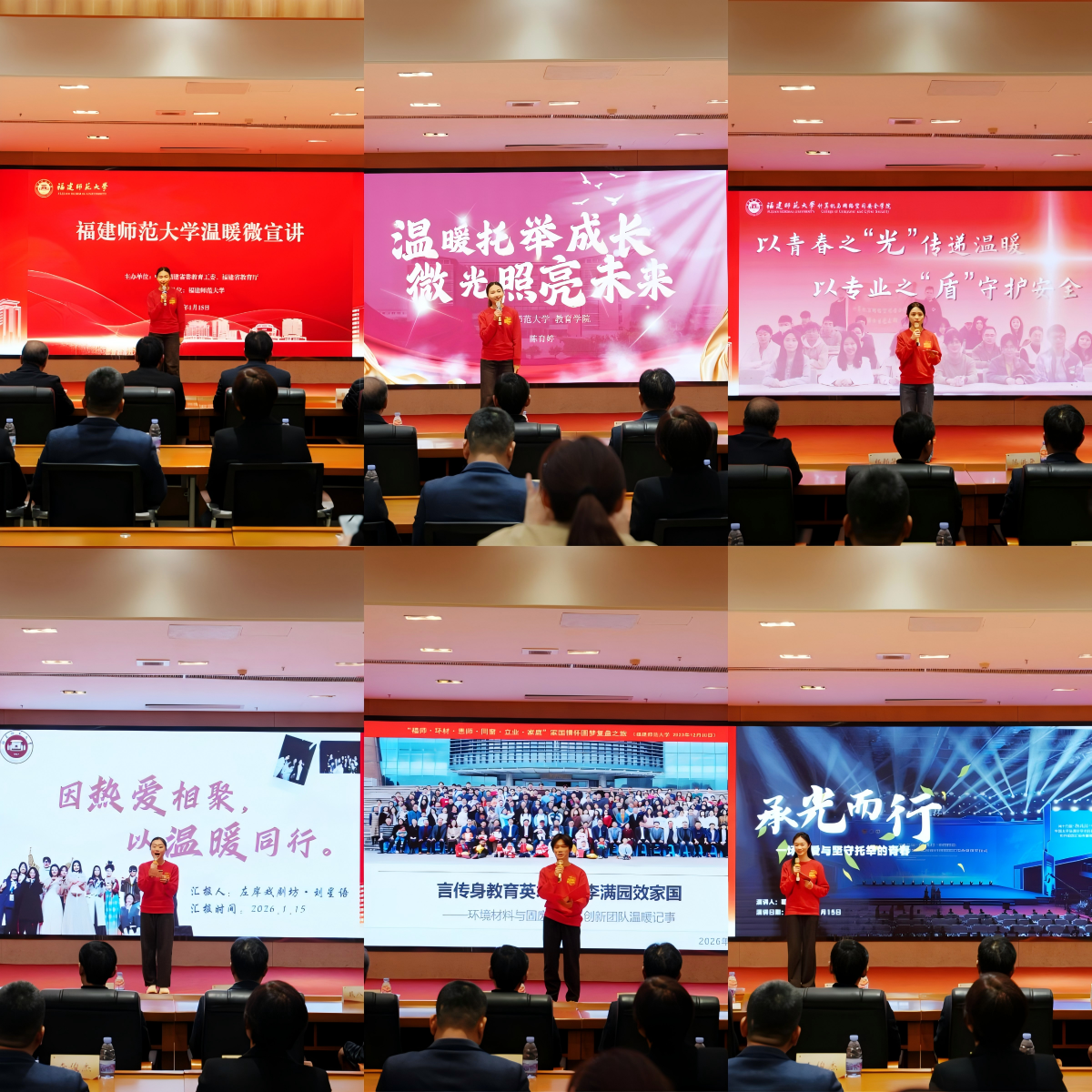 随后举行的“温暖微宣讲”活动中,来自教育学院、计算机与网络空间安全学院、文学院、环境与资源学院、碳中和现代产业学院以及传播学院等5个学院的青年学子共同讲述温暖校园故事,呈现了师生共建温暖集体的感人瞬间,展现了青春担当与集体关怀的生动实践,彰显了思想政治教育润物无声的实效。