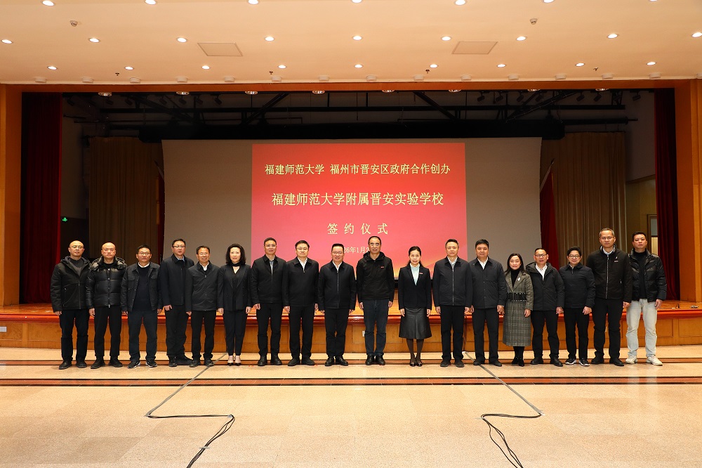 签约仪式于1月24日在晋安区委报告厅举行。福州市人大常委会副主任、晋安区委书记林涛,福州市委教育工委书记,市教育局党组书记、局长游昕,晋安区委副书记、区长夏星,福州城投集团董事长黄志强,我校校长郑家建,校党委副书记陈晓红,以及双方相关单位负责人参加了签约仪式。