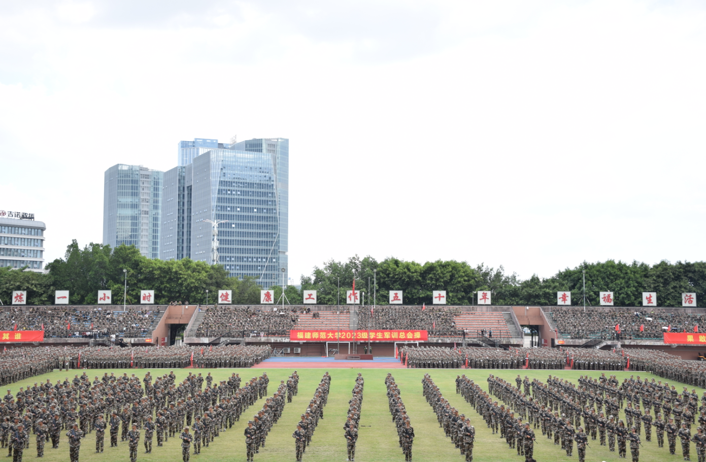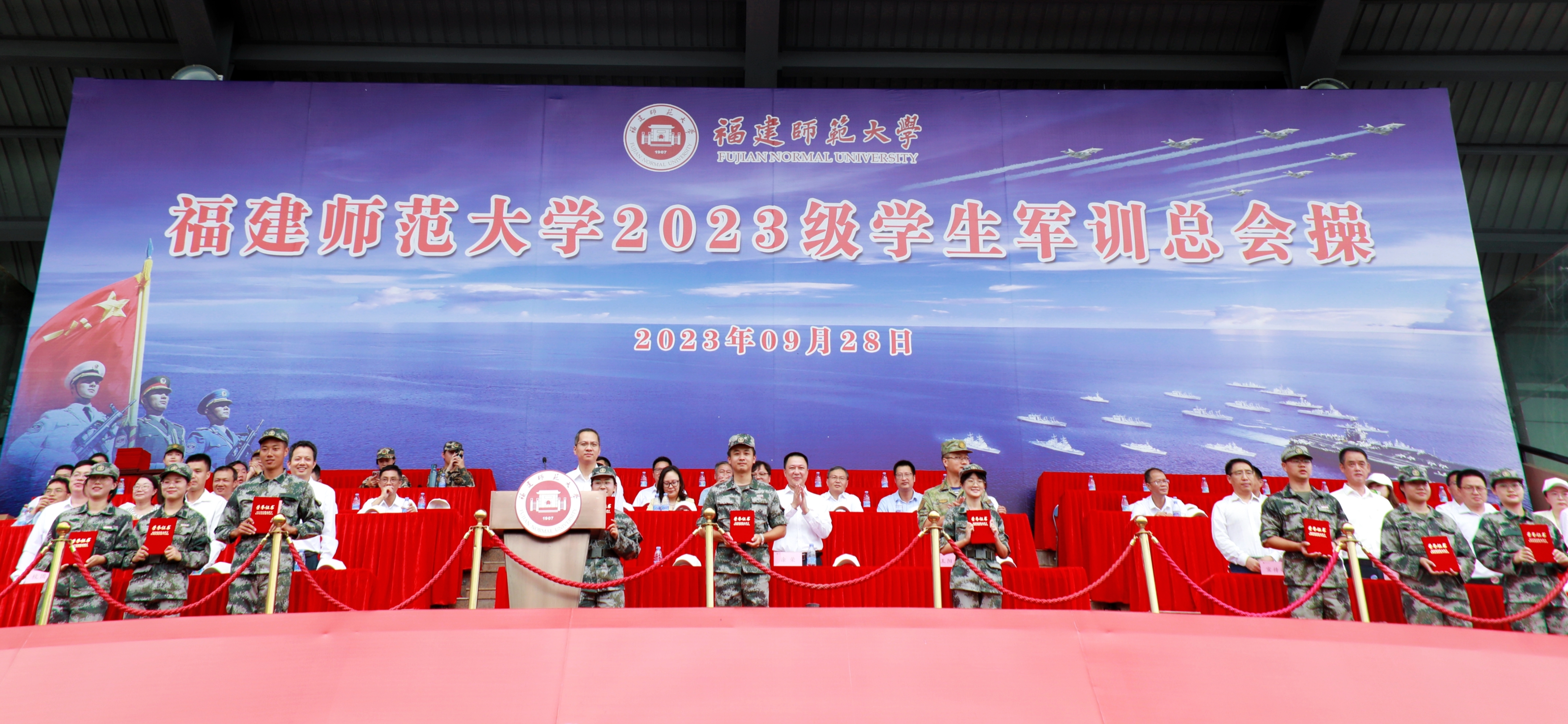 9月28日,我校在旗山校区东区田径场隆重举行2023级军训总会操。校党委副书记涂荣,军训团全体教官,军训工作领导小组成员单位、各学院分管学生工作负责人,2023级全体辅导员和学生参加了总会操。