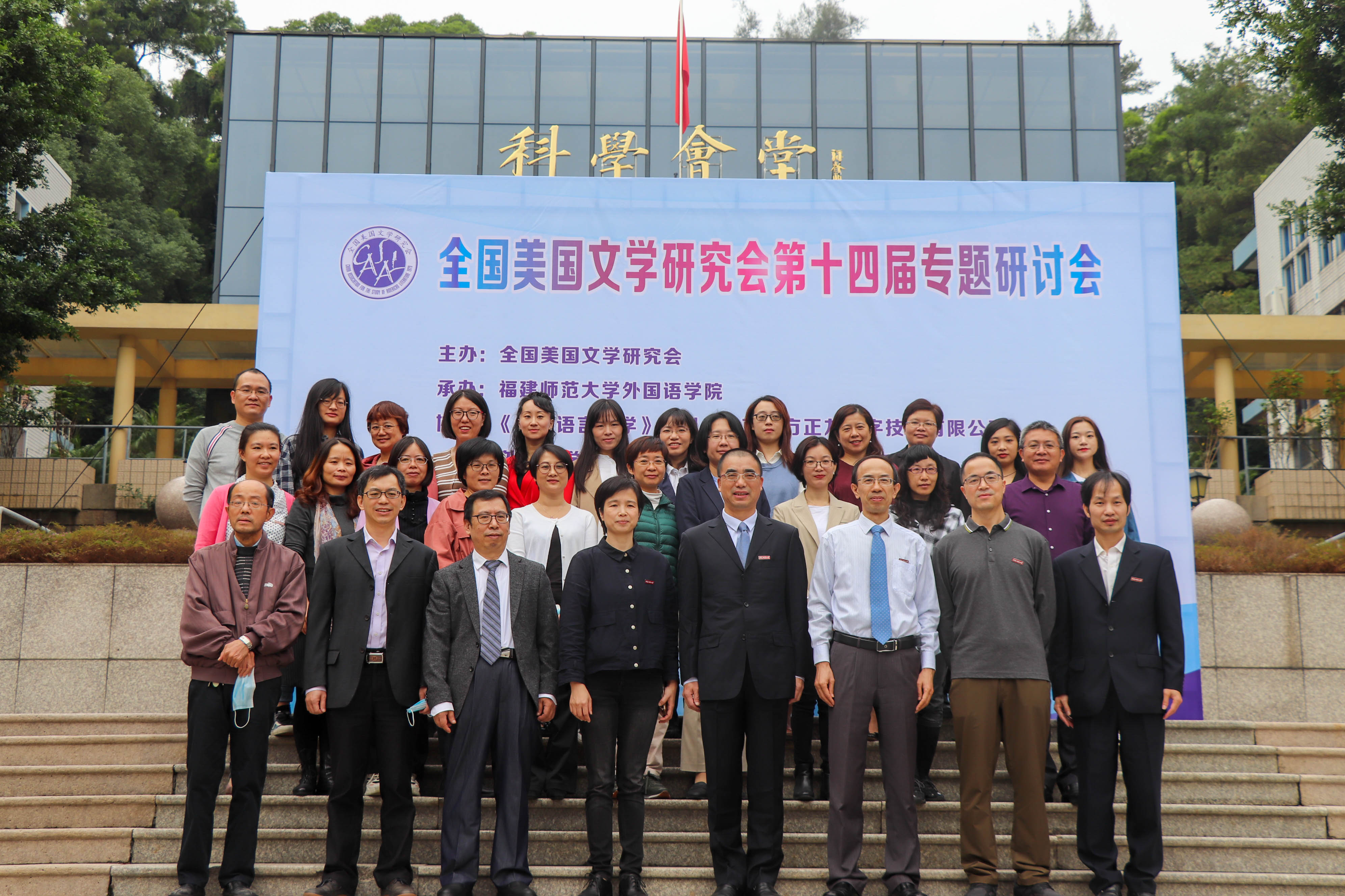 10月29日-30日,由全国美国文学研究会主办、我校外国语学院承办的“全国美国文学研究会第十四届专题研讨会”以线上线下相结合的形式召开,线下会场设在我校仓山校区科学会堂。我校副校长郑家建,外国语学院党政负责人、各研究中心负责人、学术骨干和部分师生代表参加线下会议;来自全国24个省市,108所高校近200名专家学者及研究生通过线上视频形式参加会议。组委会共收到相关论文、摘要181篇,研讨会吸引来自全国各高校和科研院所近1000名学者在线同步观看。