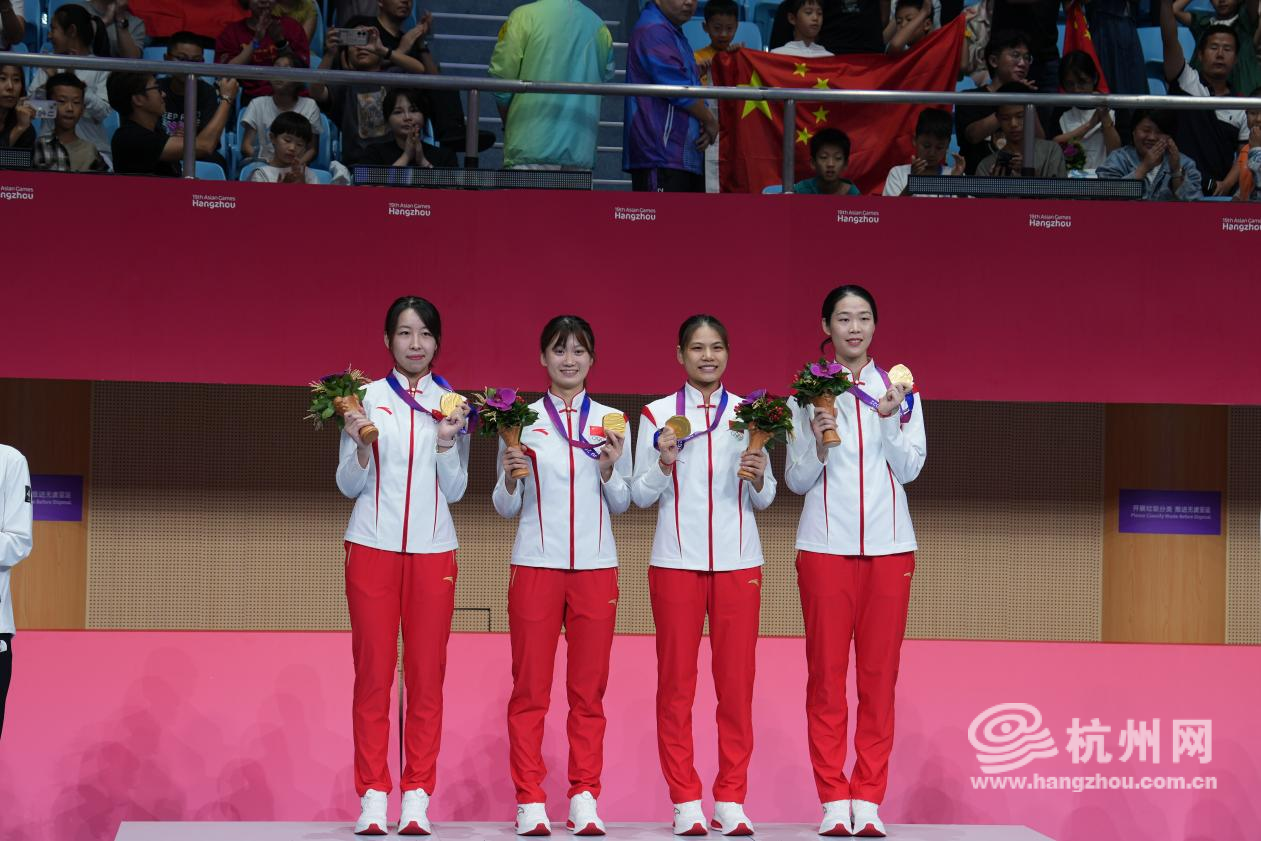 其中,运动训练专业2021级本科生黄芊芊夺得女子花剑个人赛金牌;2020级本科生陈情缘、2021级本科生黄芊芊、2023级本科生王英璎携手队友,夺得女子花剑团体冠军;2022级本科生董文鑫与队友团结协作,夺得女子水球金牌,实现亚运四连冠,赢得通往巴黎奥运会的入场券;2020级研究生欧烜屹与队友默契配合,夺得羽毛球男子团体金牌。