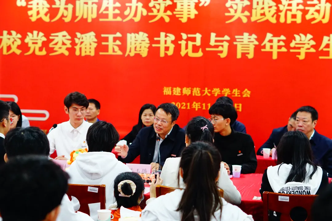 活动于11月13日在仓山校区聚星园餐厅举办。校党委书记潘玉腾、副书记李绚,党政办公室、宣传部、学生工作部、保卫处、教务处、研究生院、资产管理处、后勤管理处、基建处、仓山校区管理办公室、校团委、体育科学学院、图书馆、网络与数据中心、校医院等单位负责人和35名学生代表参加了活动。本次活动由校学生会执行主席张峰瑜主持。