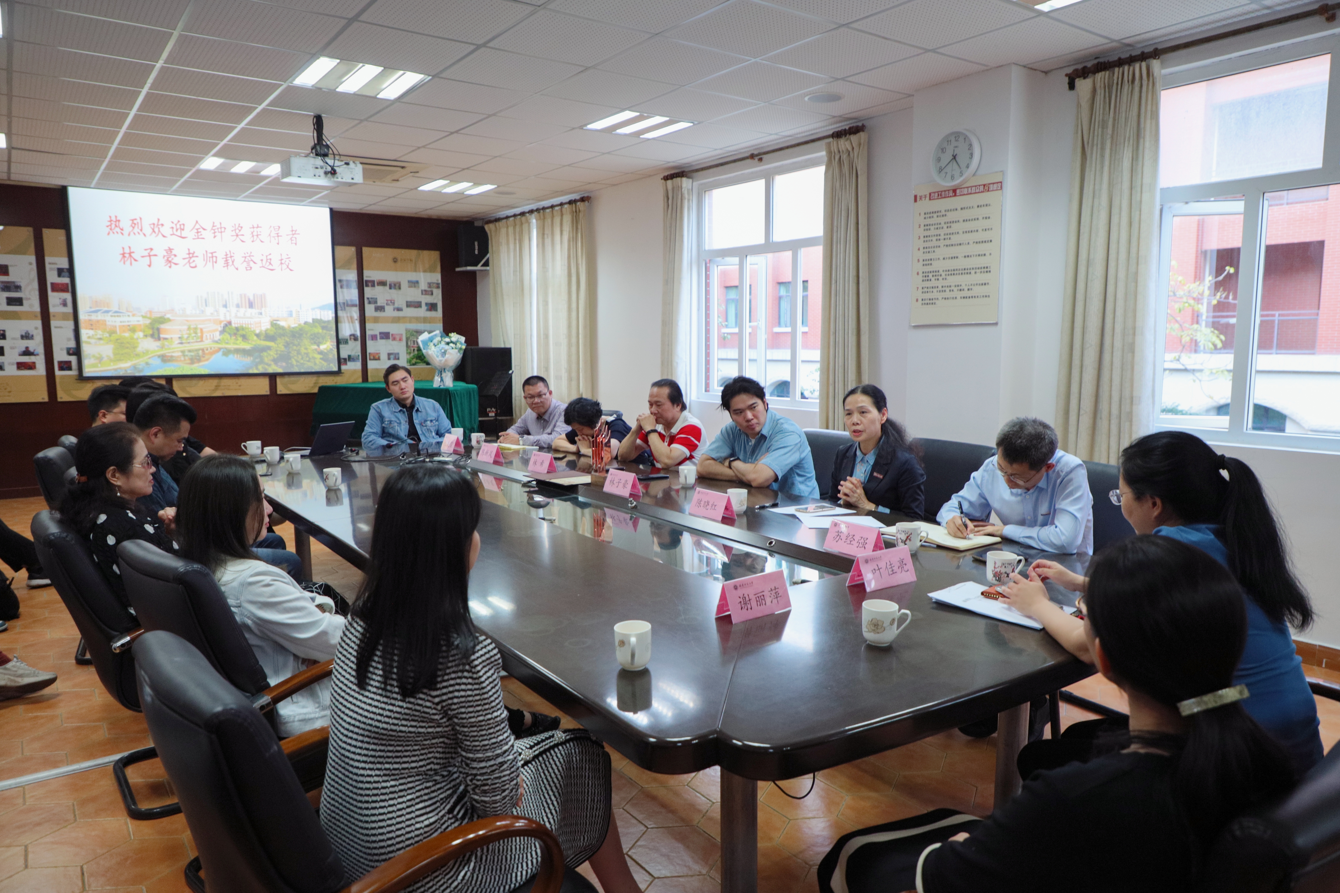 欢迎会于10月30日在我校音乐学院举行,校党委书记潘玉腾、副书记陈晓红代表学校对林子豪老师荣获第十四届中国音乐金钟奖表示热烈祝贺。