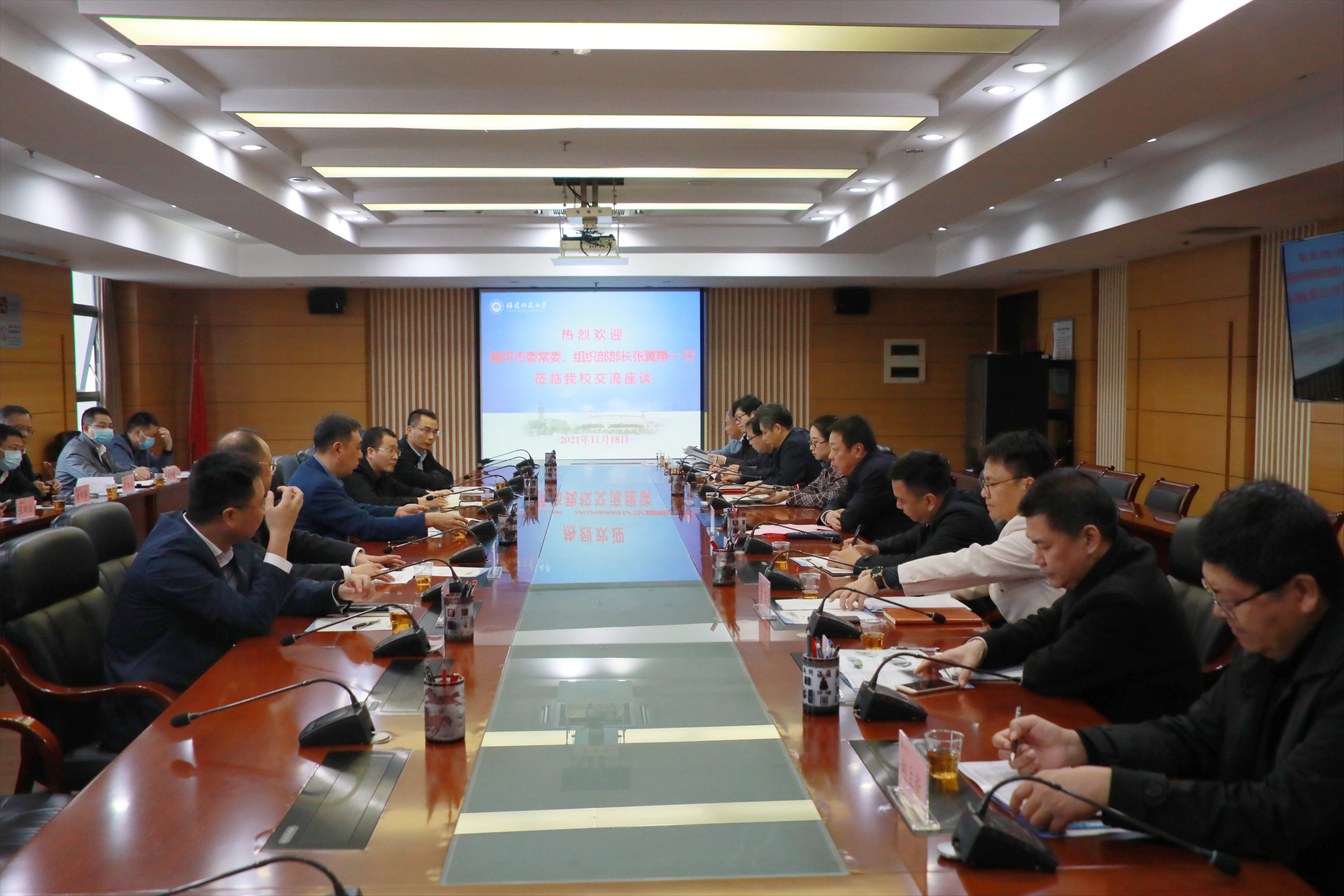 11月18日,南平市委常委、组织部部长张翼翔带领市直有关单位负责人和南平市各区县组织部部长一行16人来校交流座谈,并参加“人才·南平校园行”活动。李绚副书记,学生工作部、校团委、产教融合发展中心、教师星空官网app下载入口技能实训中心、教育学部、文学院、美术学院、物理与能源学院、生命科学学院等单位负责人参加了座谈会。