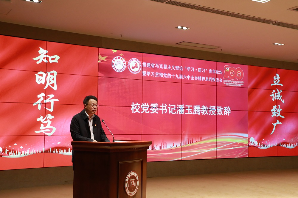 报告会于11月24日在旗山校区宏达厅举行,由我校马克思主义学院举办。中共中央党校(国家行政学院)一级教授、博士生导师韩庆祥,教育部高等学校社会科学发展研究中心主任、博士生导师王炳林,中国社科院马克思主义研究院党委书记、博士生导师辛向阳,吉林大学党委副书记、博士生导师韩喜平,我校党委书记、博士生导师潘玉腾,党政办公室、研究生院、学报编辑部、马克思主义学院等单位负责人,福州大学、福建农林大学和我校马克思主义学院师生代表以及媒体代表等150余人参加会议。