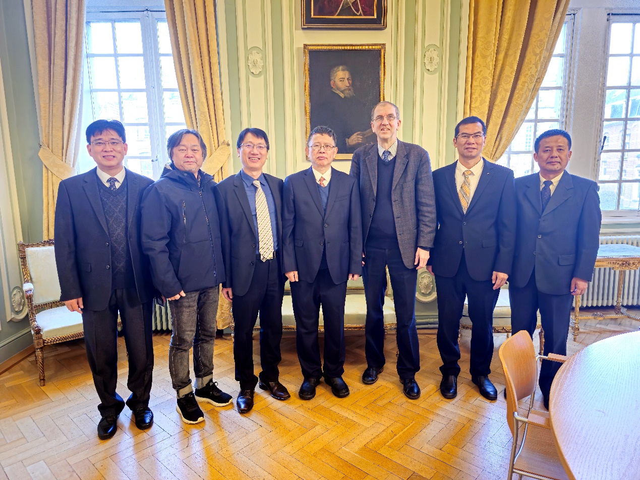 代表团与比利时鲁汶大学校长代表 Bart Hendrickx及著名汉学家钟鸣旦、Bart Bruggen 进行了座谈。陈庆华介绍了我校的发展近况、与国外高校和科研机构的合作进展情况,希望以访问为契机,扎实做好双方科研团队合作项目评估,携手推进两校双导师联合培养制度落地,推动建立正式的校际合作关系。双方认为,两校应加强互访交流,拓宽合作领域,在学生交换、师生交流、师资培训等方面增进合作。