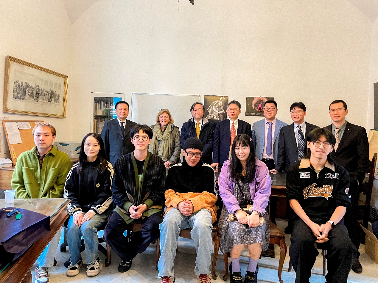 代表团与意大利那不勒斯美术学院主席 Rosita Marchese、副校长 Adriana de Manes进行了座谈,双方围绕两校首届硕士研究生培养工作展开深入研讨。陈庆华介绍了我校合作办学人才培养工作实践,希望双方通力合作,落实落细星空官网app下载入口课程安排,为推进合作办学项目可持续发展做好顶层设计。双方表示将严格落实合作办学协议,积极推动两校办学深度合作。